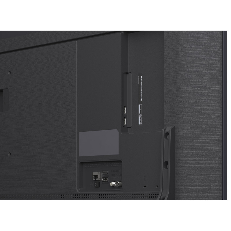 طراحی دستگاه باریک و مینیمال بوده و حاشیههای ظریف، جلوهای لوکس ایجاد میکند. با وزن تقریبی ۲۳ کیلوگرم (با پایه) و امکان نصب دیواری VESA 300×200، برای فضاهای مدرن مناسب است. درگاههای کامل شامل ۳ HDMI (پشتیبانی ALLM/eARC)، یک USB، Wi-Fi 5، اترنت، خروجی اپتیکال و بلوتوث ۵.۰، انعطاف بالایی در اتصال فراهم میکند.