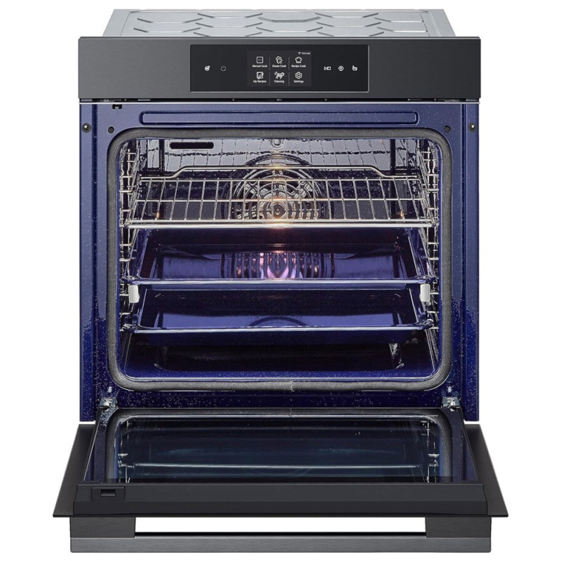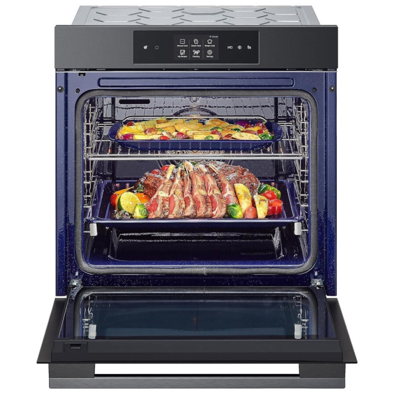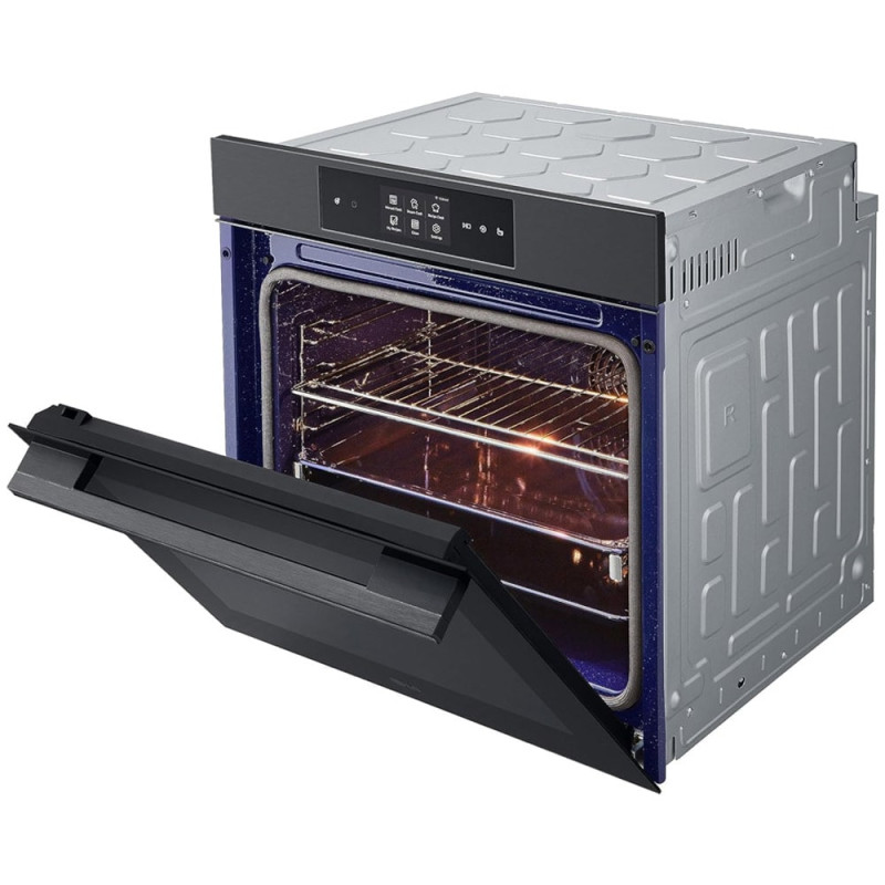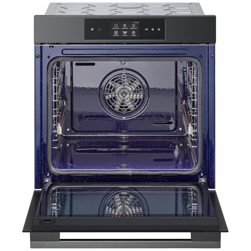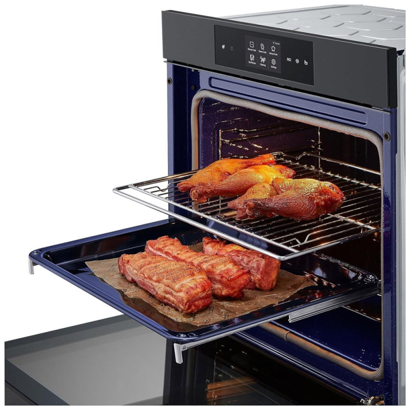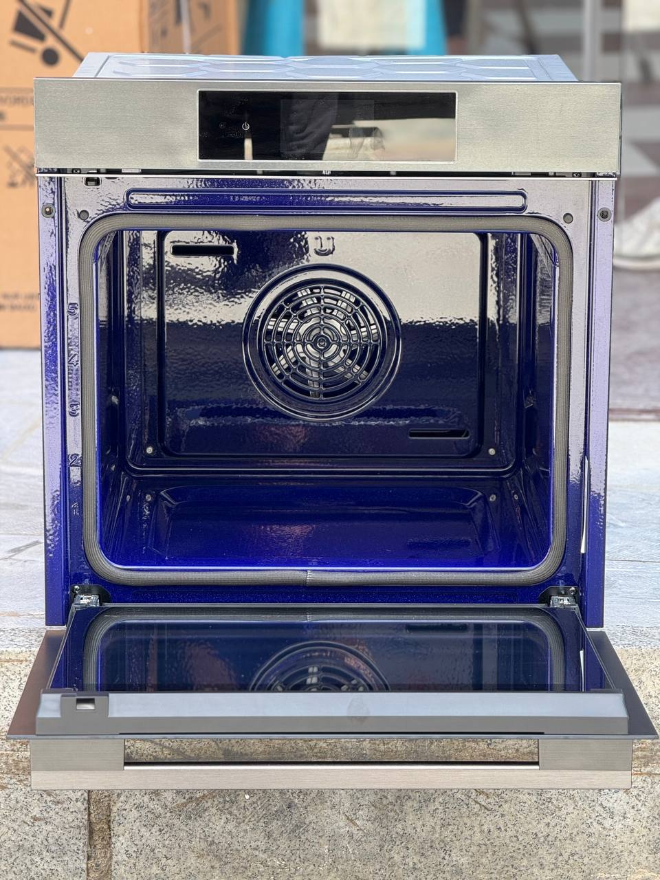 فر توکار LG WSED7665B با بدنه استیل مشکی براق و پنجره شیشهای سهلایه، زیبایی خیرهکنندهای دارد. طراحی مینیمال آن با جزئیات ظریف همچون دستهی آلومینیومی برسخورده، تداعیکننده سلیقهی لوکس خانههای ایرانی است. جنس لعاب داخلی مقاوم در برابر چربی، دوام بالا در بلندمدت را تضمین میکند.