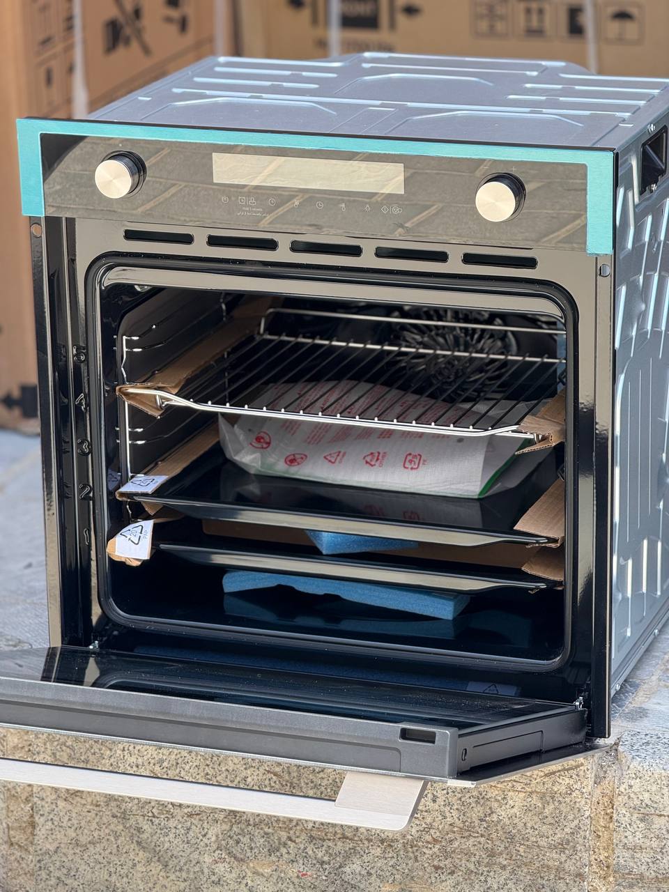 - بدنه استیل مشکی-نقرهای براق با نمایشگر LED و دکمه گرد انتخاب حالت
